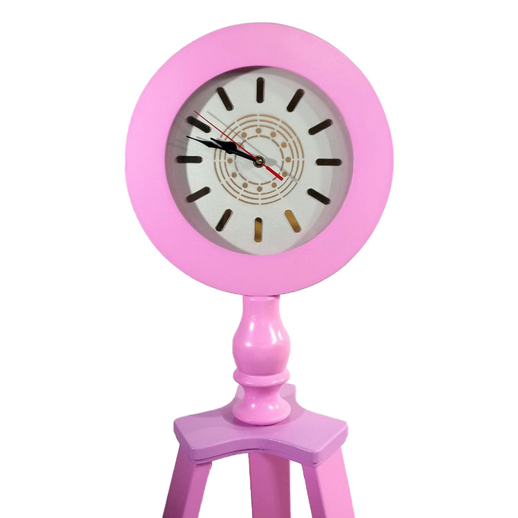 این کالا در حین سادگی بسیار مدرن و شیک میباشد. این محصول از ساعت به پایه ها بصورت پیچ و مهره ای بسته میشود , به همین خاطر برای جابجایی بسیار راحت است. هر پایه چوبی بر طبق شماره درج شده روی آن به همان شماره روی سه پایه فلزی متصل میشود. مخصوص اتاق کودکان و محیط بازی کودکان مهد و..